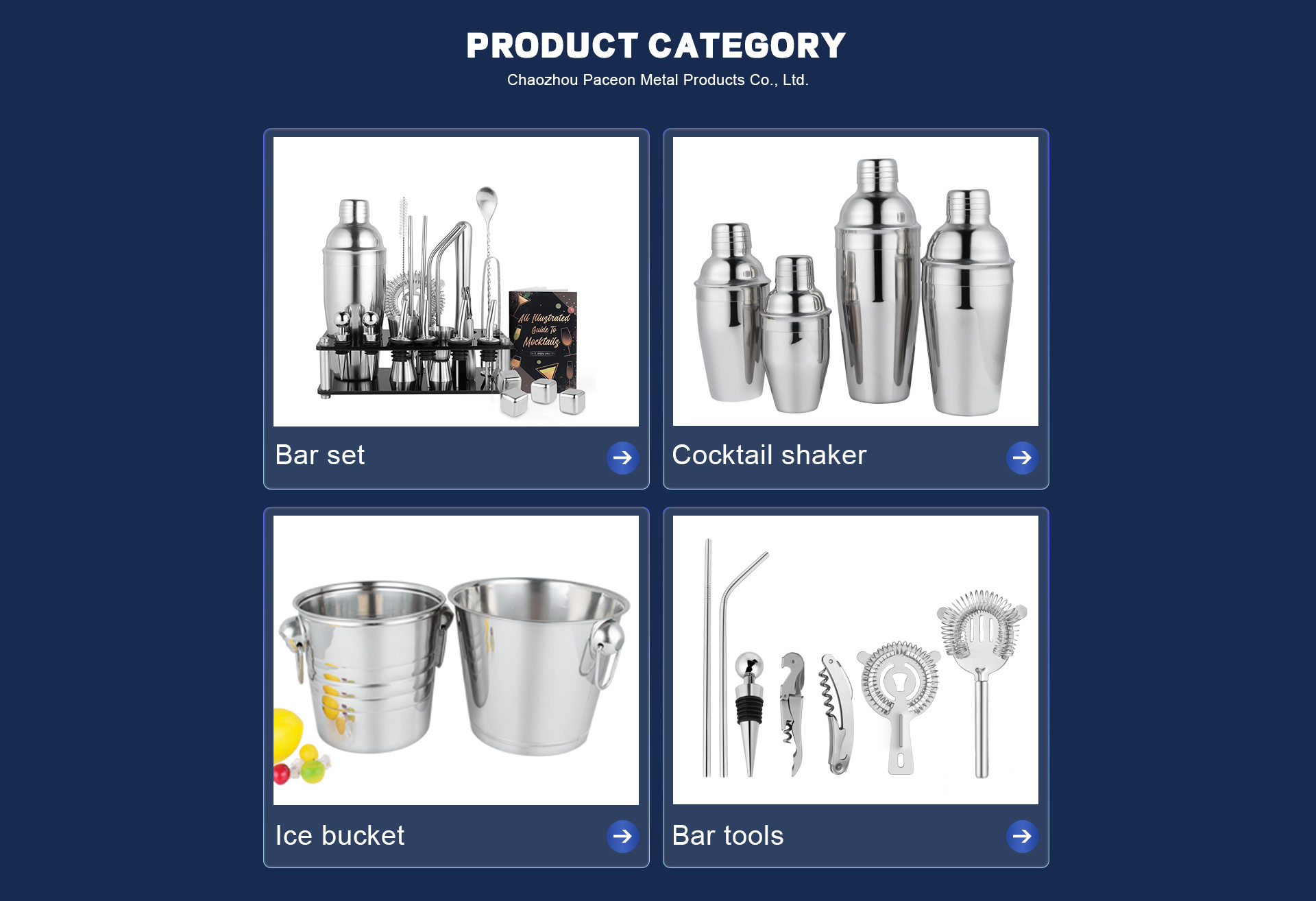Belangrijkste producten:Cocktail shaker, bar tools, jigger, ijsemmer