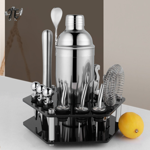 Directo de fábrica, 14 Uds., juego de accesorios para Bar, juego de coctelera de camarero de acero inoxidable con soporte acrílico
