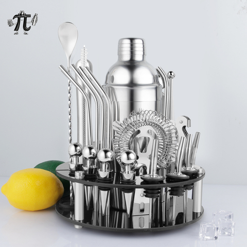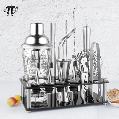 Juego de coctelera Boston de acero inoxidable de 20 piezas, Kit de camarero con soporte acrílico, herramientas de barra, fiesta de Bar en casa