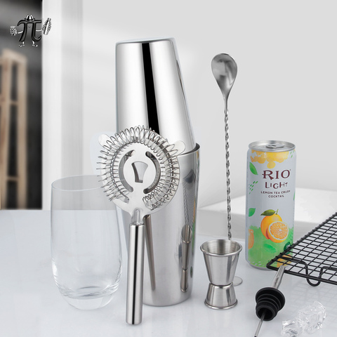 Juego de coctelera directa de fábrica, juego de coctelera Boston de acero inoxidable de 5 piezas para juego de barra