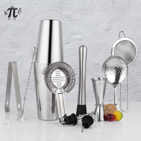 Venta caliente 10PCs Boston Cocktail Shaker Set Kit de barman de acero inoxidable