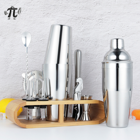 Gran oferta, juego de coctelera de 14 Uds., herramientas de barra de acero inoxidable, Kit de camarero con soporte, mezclador de Martini para barra casera