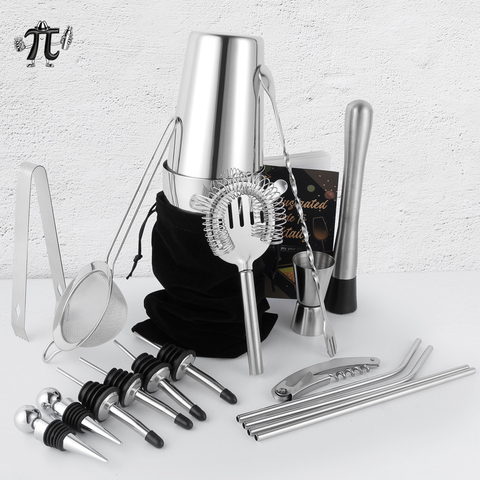 Hete Verkoop 20 Stuks Roestvrijstalen Cocktail Maken Kit Boston Shaker Set Met Fluwelen Tas Voor Opslag