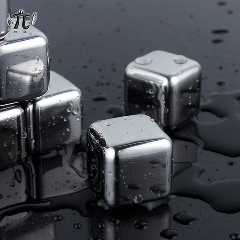 Fábrica al por mayor reutilizable 304 Acero inoxidable whisky enfriamiento piedras cubo de hielo con pinza de hielo para servir bebidas y barman