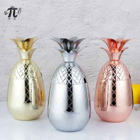 Vaso de piña de acero inoxidable a la moda, copa de cóctel reutilizable con medidas de barra para fiesta, herramientas de barra para beber